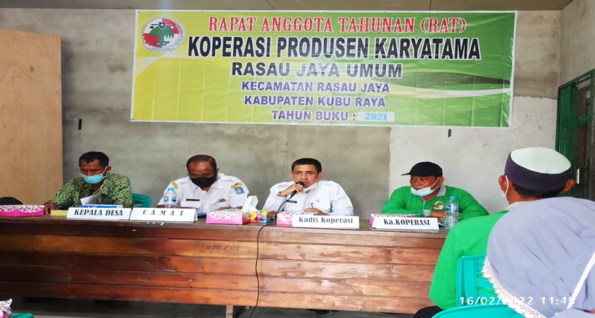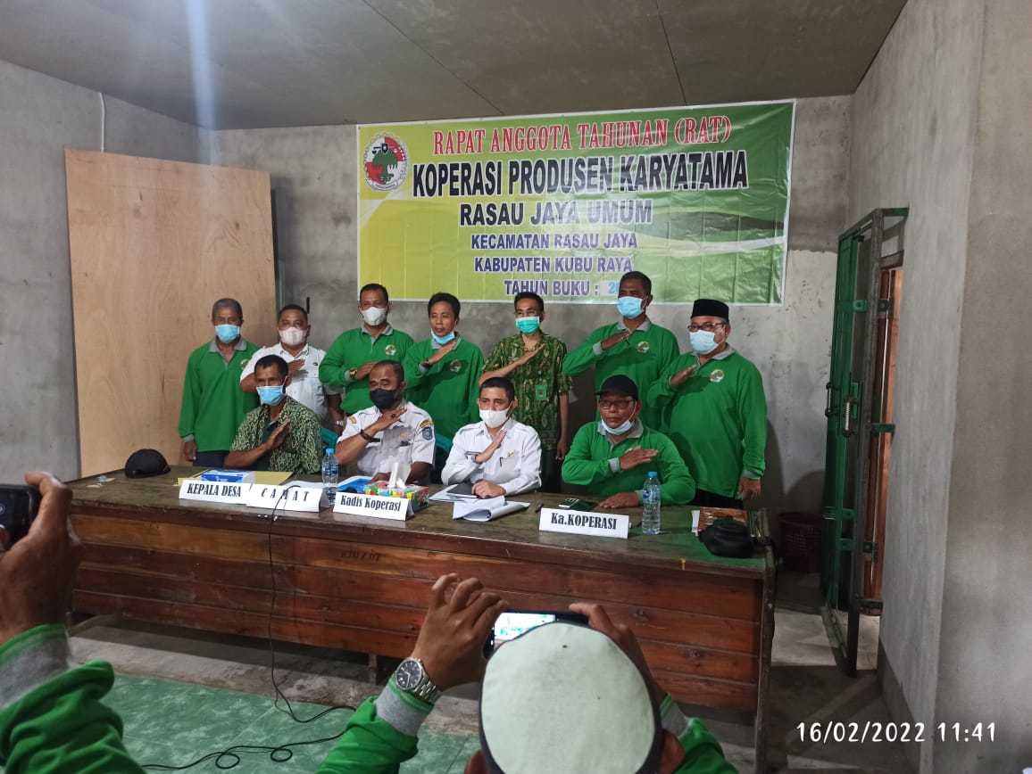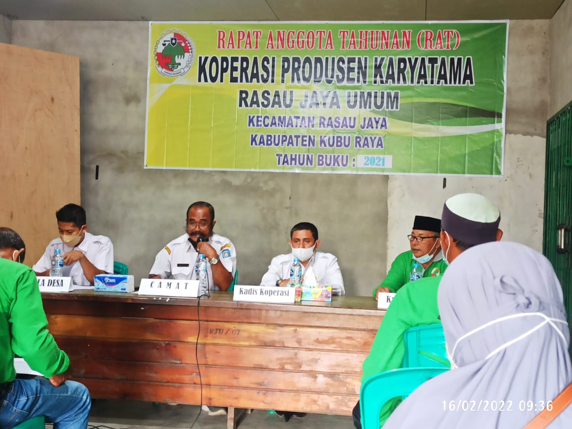 RAT dan Pergantian Pengurus pada Koperasi Produsen Karyatama, Rasau Jaya Umum, Kecamatan Rasau Jaya, yang dilaksanakan pada Tanggal 16 Februari 2022.