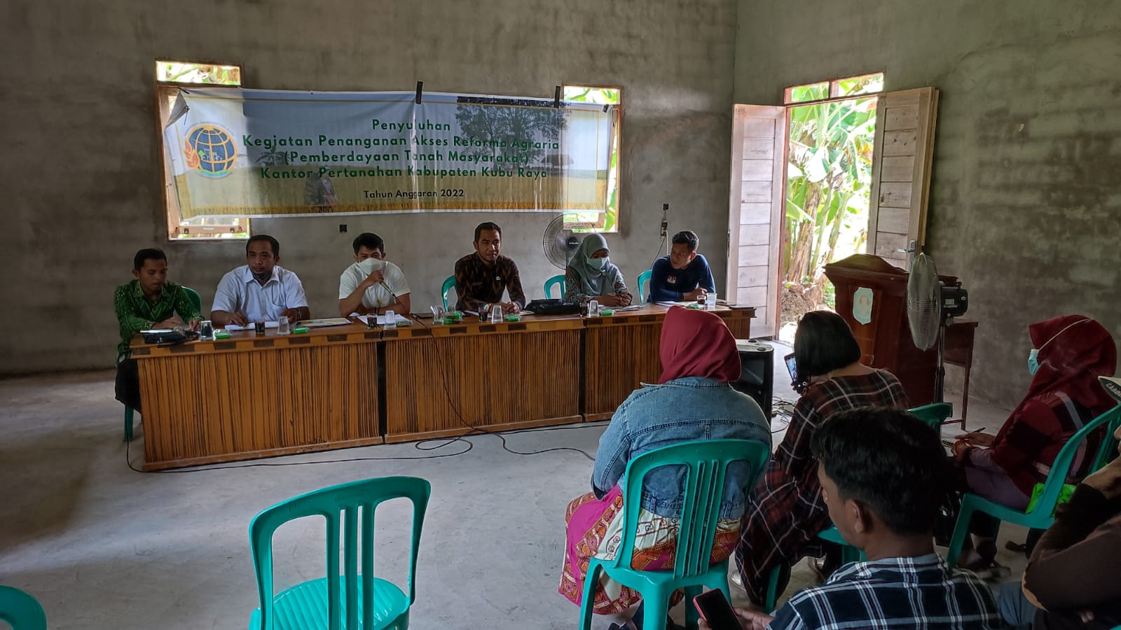 Penyuluhan Kegiatan Pemberdayaan Tanah Masyarakat dalam Upaya Mendukung Peningkatan Ekonomi Pelaku UMKM di Desa Sungai Enau, Kecamatan Kuala Mandor B, Kabupaten Kubu Raya. Kegiatan dilaksanakan pada Kamis, 31 Maret 2022.