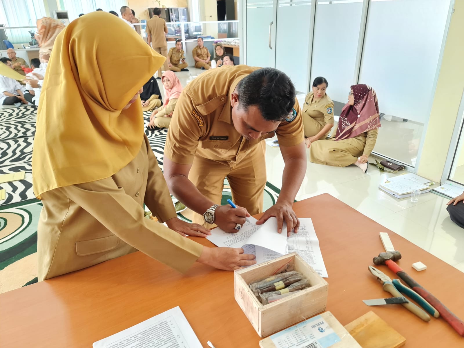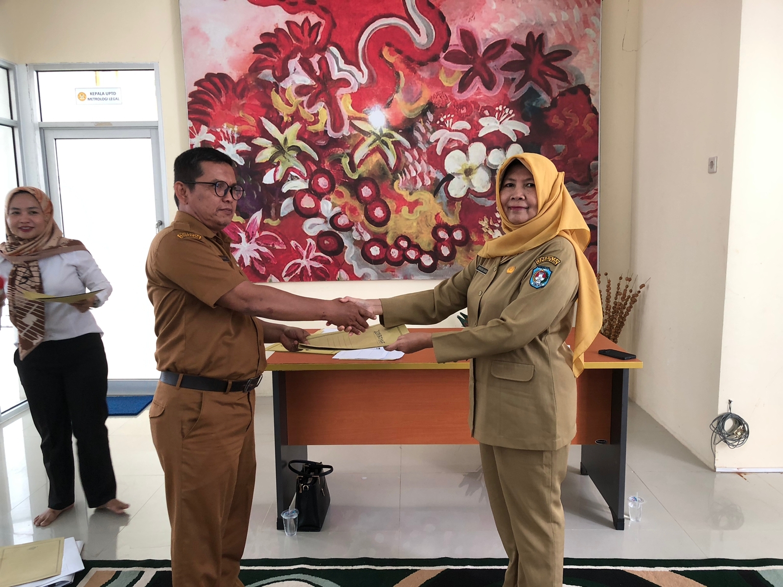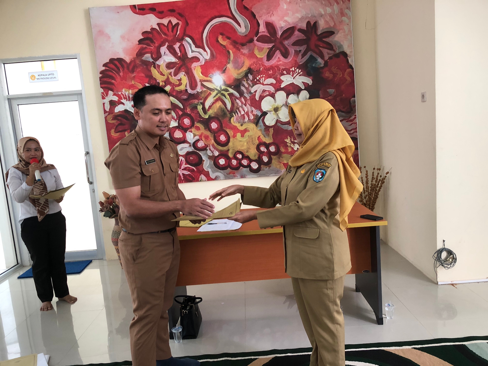 Penandatanganan Perjankin dan Pakta Integritas, Pembagian SK PPK, PPTK dan PPBJ serta Pembagian SK Tenaga Kontrak. Kegiatan dilaksanakan dalam rangka sosialisasi pelaksanaan Program/Kegiatan Tahun Anggaran 2023. Bertempat di Gedung UPTD Metrologi Legal pada Senin, 16 Januari 2023.