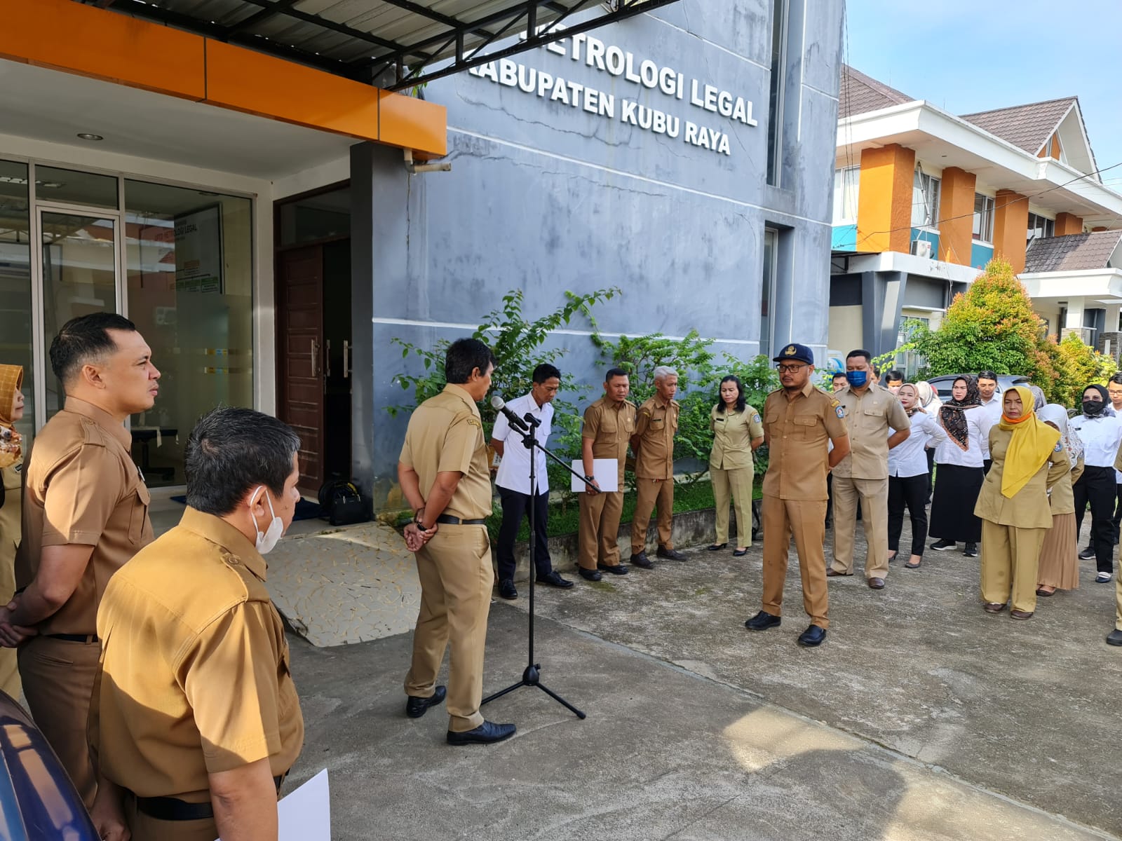 (6/2/23) Kegiatan Apel Pagi pada Hari Senin yang dilaksanakan di halaman Dinas Koperasi, Usaha Kecil dan Menengah, Perindustrian dan Perdagangan Kabupaten Kubu Raya.